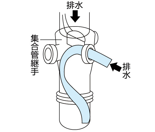 各住戸の横引排水管と竪管がスムーズに合流する集合管継手を使用しました。さらに、最下階住戸の排水管系統は、独立配管とし、上層階の排水の影響を受けにくい工夫をしました。