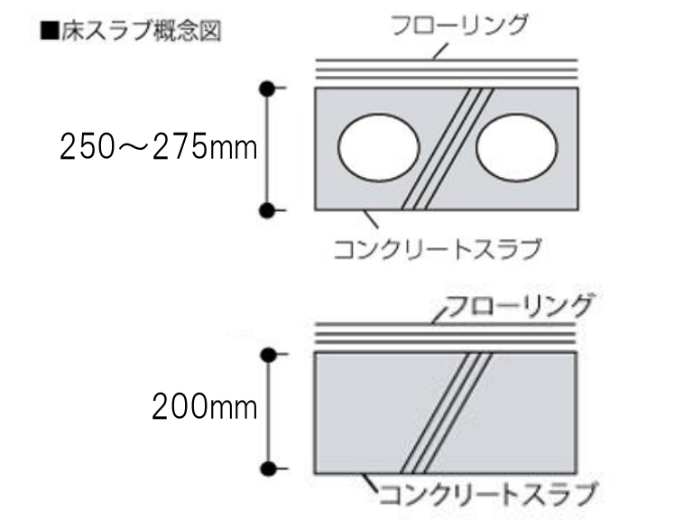 外壁は160mm~200mm、戸境壁は180~200mmのコンクリート厚を確保。